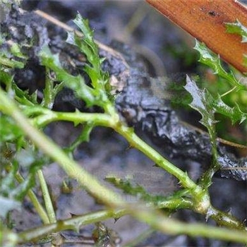 形态特征:年生沉水草本。植株多汁,较粗壮,呈黄绿色至墨绿色,有时节部褐红色,质脆,易从节部折断;株高30-100厘米,或更长,茎粗1-4.5毫米,节间长1-10厘米,或更长,通常越近基部则越长,基部节上生有不定根;分枝多,呈二叉状,常具稀疏锐尖的粗刺,刺长1-2毫米,先端具黄褐色刺细胞;表皮与皮层分界明显。叶近对生和3叶假轮生,于枝端较密集,无柄;叶片线状披针形,稍向上弯曲,长1.5-3厘米,宽约2毫米或更宽,先端具1黄褐色刺细胞,边缘每侧具4-10枚粗锯齿,齿长1-2毫米,背面沿中脉疏生长约2毫米的刺状齿;叶鞘宽圆形,长约3毫米,抱茎,全缘或上部具稀疏的细锯齿,齿端具1黄褐色刺细胞。花黄绿色,单生于叶腋;雄花长约5毫米,直径约2毫米,具1瓶状佛焰苞;花被片 1,2裂;雄蕊1枚,花药4室;花粉粒椭圆形;雌花无被,裸露;雌蕊1枚,椭圆形;花柱圆柱形,长约1毫米,柱头2-3裂;子房1室。瘦果黄褐色,椭圆形或倒卵状椭圆形,长4-6毫米,直径3-4毫米,不偏斜,柱头宿存。种皮质硬,易碎;外种皮细胞多边形,凹陷,排列不规则。花果期9-11月。